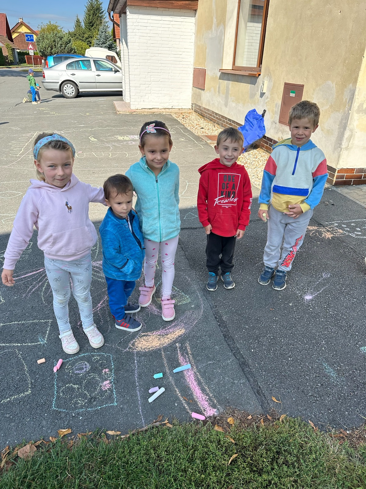 Sportovní vyžití pokračovalo na hřišti, kde se rozpoutalo pravé atletické dopoledne. S míči v rukou i u nohou si děti vyzkoušely fotbalové přihrávky i přesnost při hodech na basketbalový koš. Kromě sportování jsme stihli i trochu zkrášlit naše okolí. Prostranství před kulturním domem děti proměnily v jedno velké malířské plátno a vyzdobily ho veselými křídovými obrázky, které teď dělají radost všem kolemjdoucím. Dny v naší školce jsou teď zkrátka plné her, tvoření a společného objevování světa kolem nás. Prohlédněte si naše fotky, jak nám to na sluníčku i s lamami slušelo.